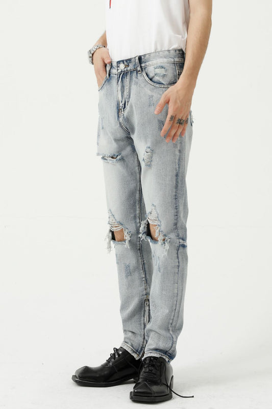 Distressed Side Zip Jeans with Pockets