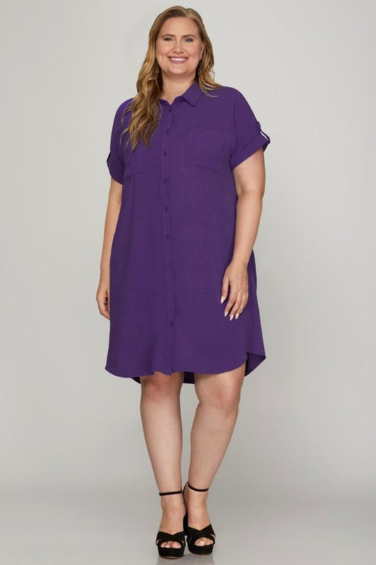 Sold outShe + Sky Full Size Button Down Short Sleeve Woven Shirt Dress Plus Size