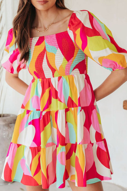 Perfee Printed Round Neck Short Sleeve Midi Dress