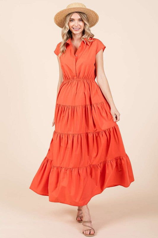 Sold outMittoshop Button Up Collared Tiered Maxi Shirt Dress