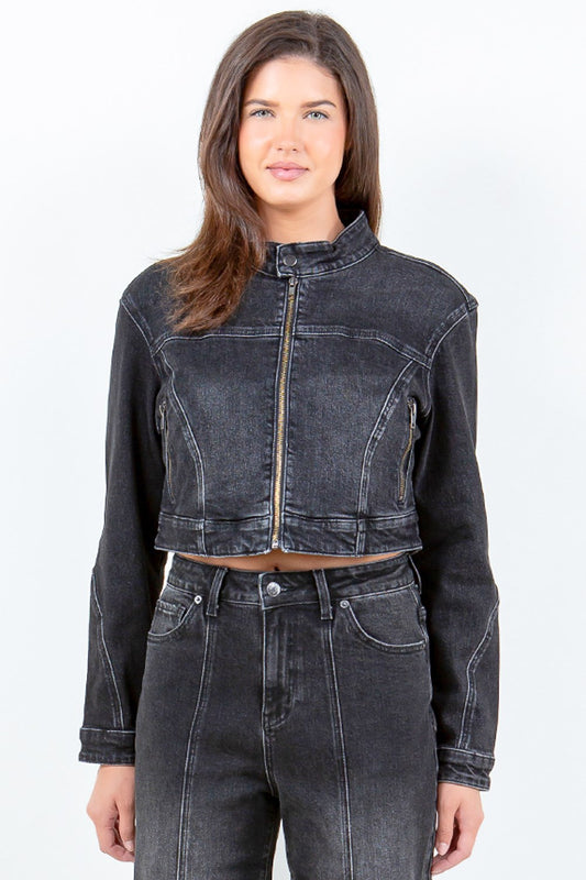 Sold outAmerican Bazi Full Size Zip Up Cropped Denim Rider Jacket Plus Size