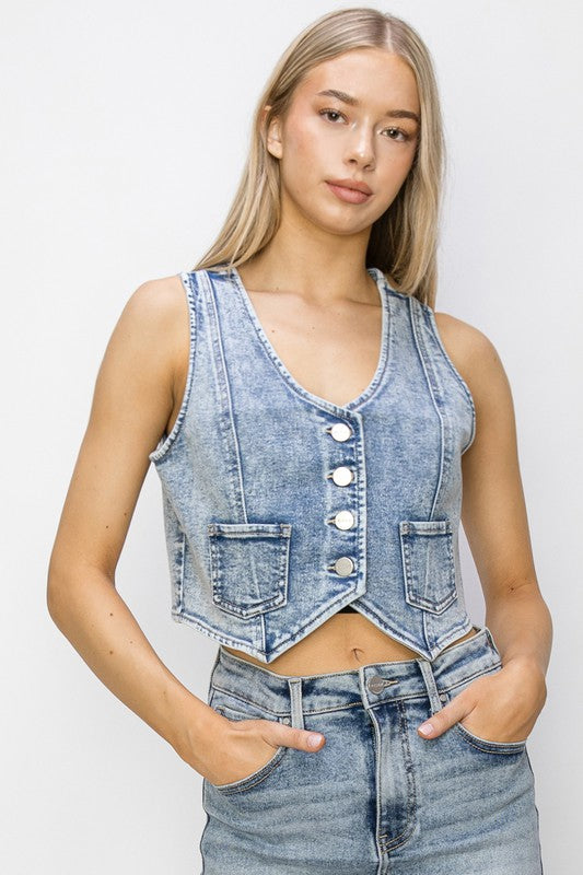 Removable Hood Button Up Cap Sleeve Denim Jacket