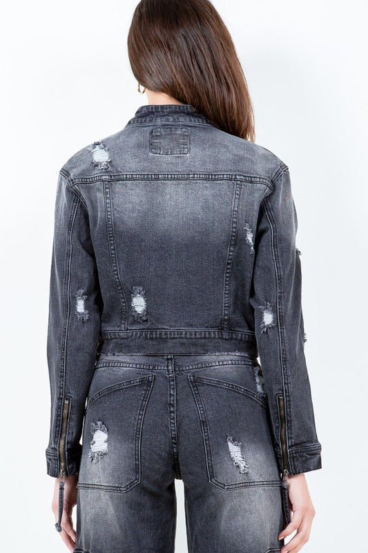 Sold outAmerican Bazi Full Size Distressed Star Stud Trim Denim Rider Jacket Plus Size