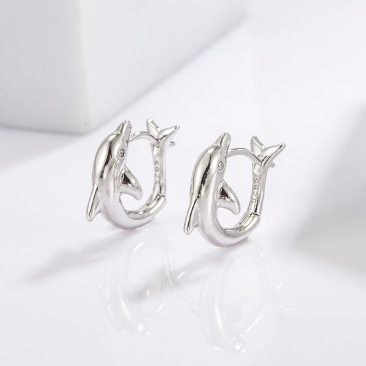 925 Sterling Silver Zircon Dolphin Earrings