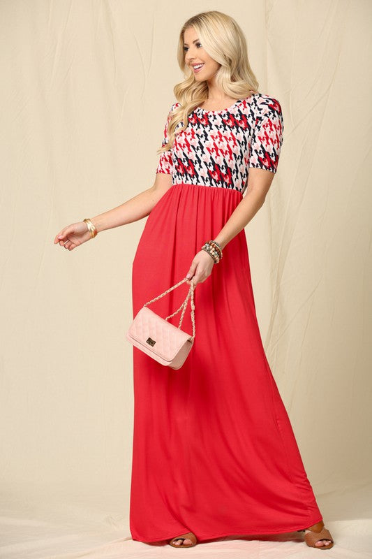 Sold outCeleste Full Size Houndstooth Round Neck Short Sleeve Maxi Dress Plus Size