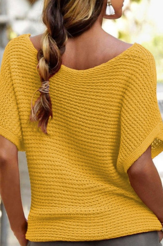 Sold outPOL Openwork Ethnic Pattern Square Neck Cropped Knit Top
