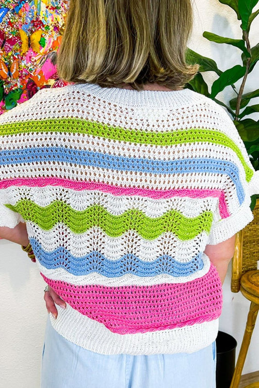 Sold outHaptics Openwork Striped Round Neck Half Sleeve Knit Top