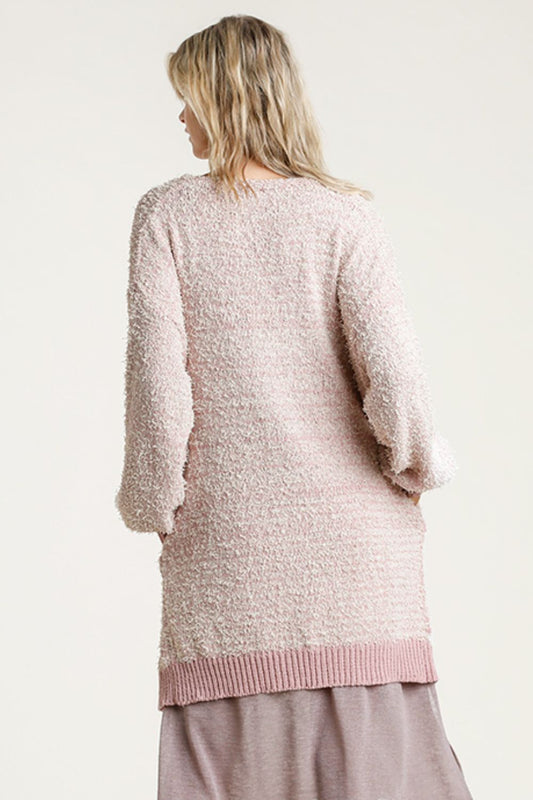Davi & Dani Fuzzy Smile Open Front Long Sleeve Cardigan