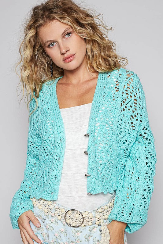 Sold outPOL Cable-Knit Openwork V-Neck Button Up Cardigan