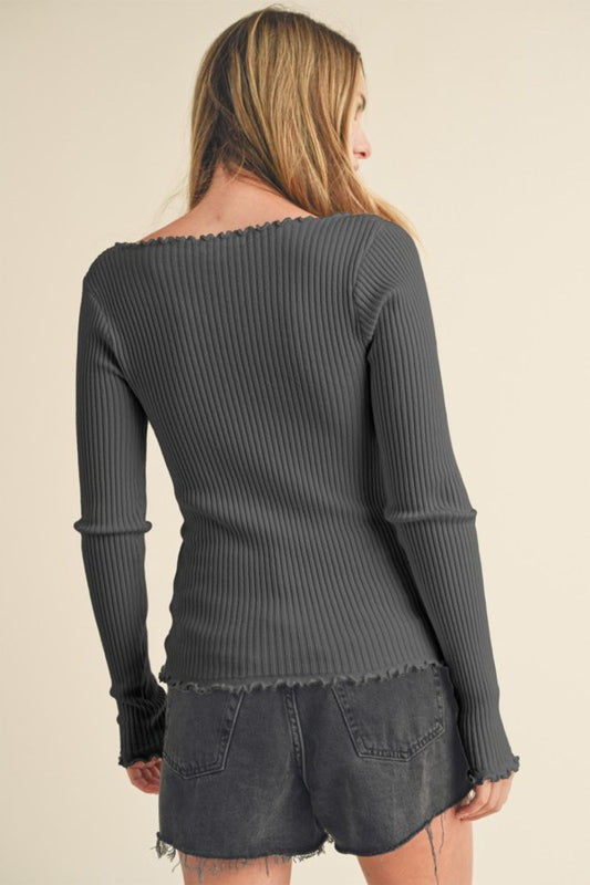 Sold outAemi + Co Lettuce Hem Scoop Neck Long Sleeve Knit Top