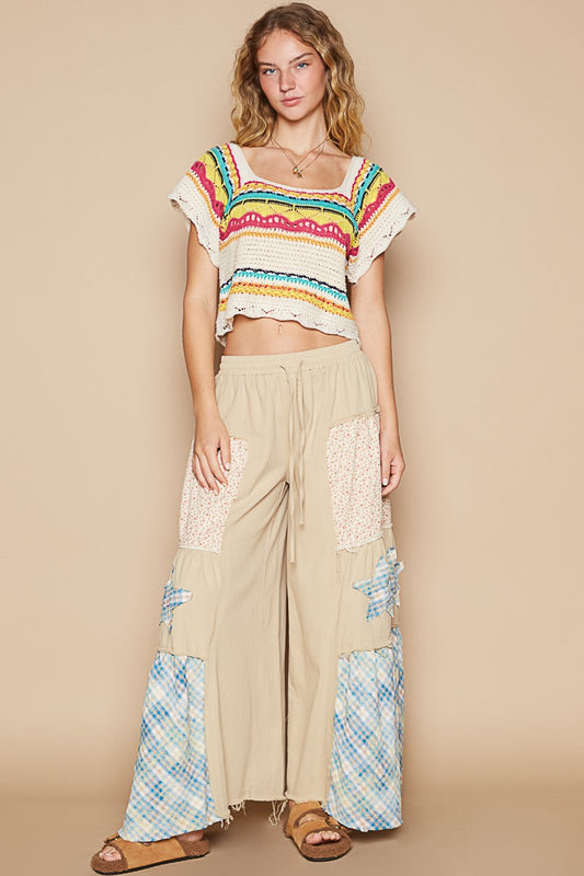 Sold outPOL Openwork Ethnic Pattern Square Neck Cropped Knit Top
