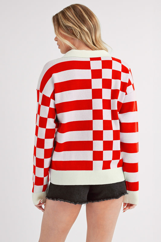 Sold outAemi + Co Striped & Checkered Drop Shoulder Sweater