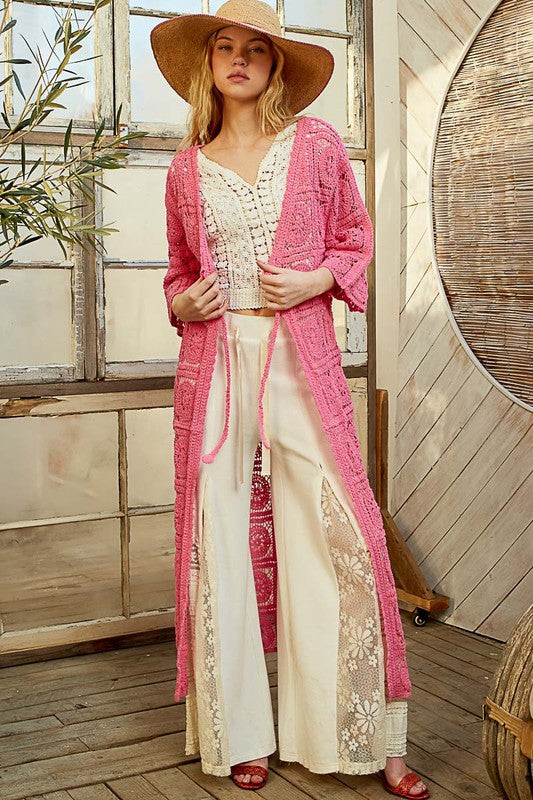 Sold outPOL Tied Crochet 3/4 Sleeve Longline Cardigan