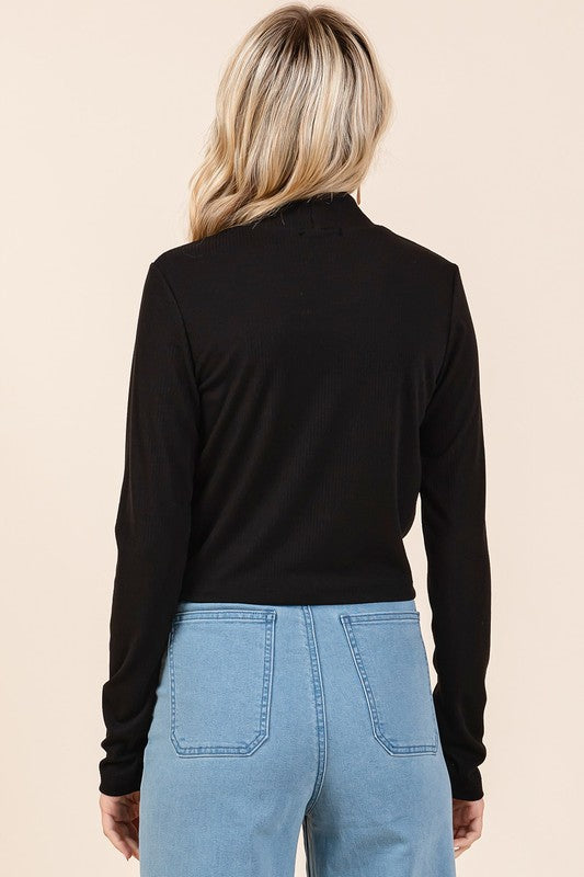 Sold outMittoshop Mock Neck Rib Knit Long Sleeve Crop Top