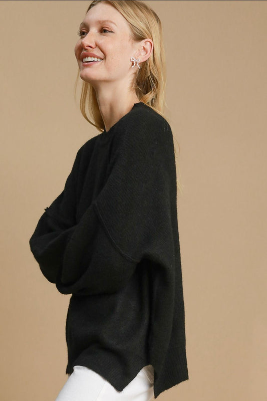 Sold outUmgee Full Size Side Slit Wool Blend Round Neck Sweater Plus Size